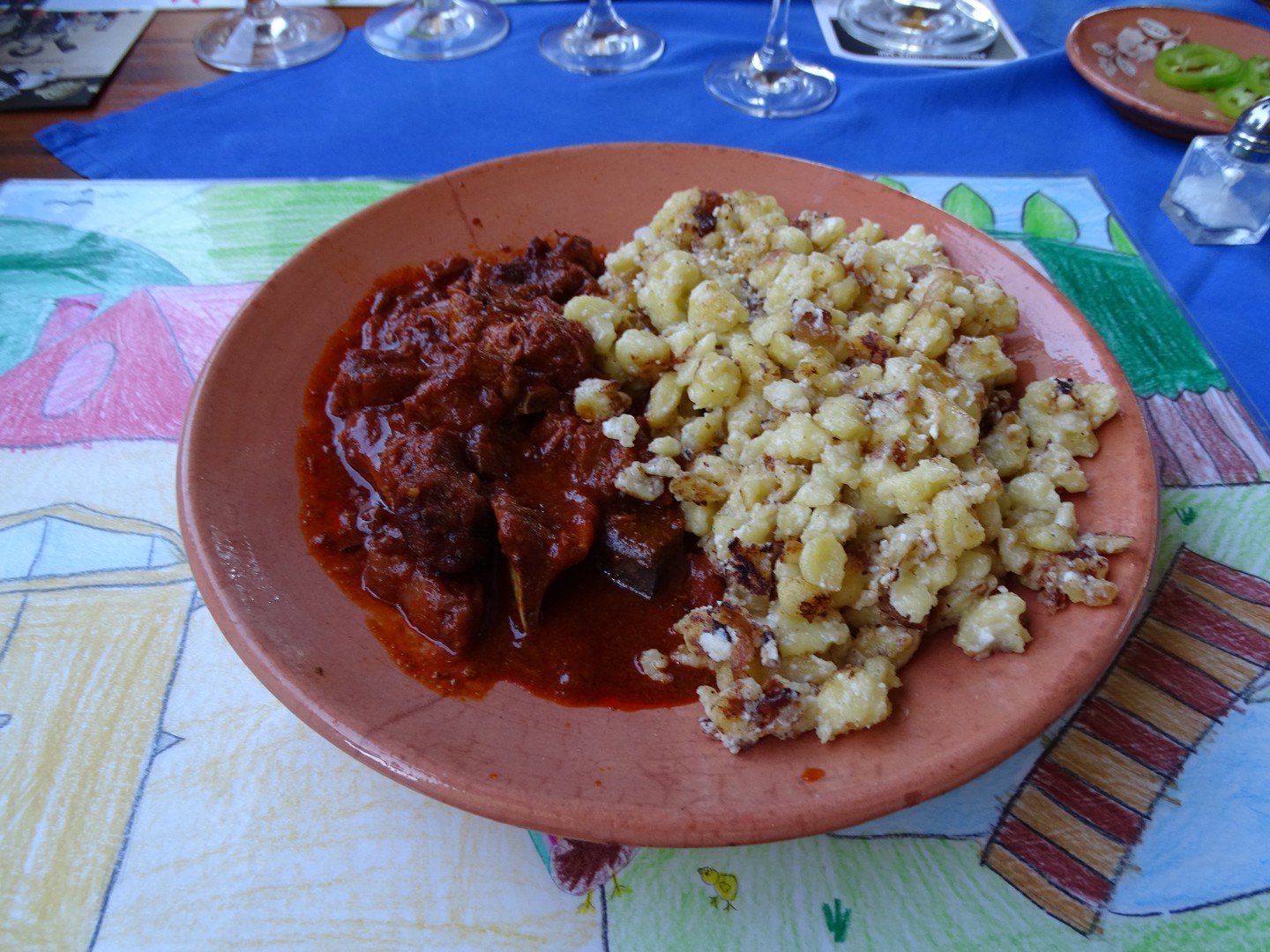 Legutóbbi látogatásunk alkalmával babgulyást rendeltünk szürkemarhával és füstölt mangalica csülökkel. Sűrű, tartalmas, kifejező ízű lében jó állagú babot, ízletes húsdarabokat és csülökkockákat kaptunk. Az étlapon sós burgonyával kínált birkapörköltet juhtúrós sztrapacskával kértük. Finoman lepirított, jó ízű, jó állagú sztrapacska körítette az ország egyik legjobb, tanítható, karcagi stílusú birkapörköltjét. Az már inkább élvezkedés volt s nem teszt, hogy velővel és gombával töltött sertésbordát is rendeltünk, amihez dödöllét kértünk, ez ugyanis az étterem egyik erőssége. Kiváló hagyományos húsétel volt ez, jó körettel és remek kovászos uborkával, aminek levélből fröccsöt is kínálnak. A desszertfronton is megmaradtunk a legpuritánabb vonalon, túrós palacsintát kértünk. Vasserpenyősnek tűnő, frissen sült, ízletes palacsintát kaptunk nem túlédesített, finom töltelékkel.