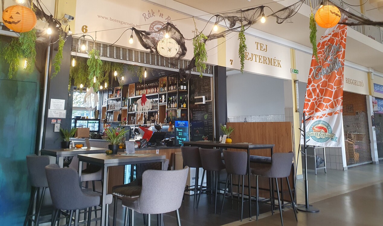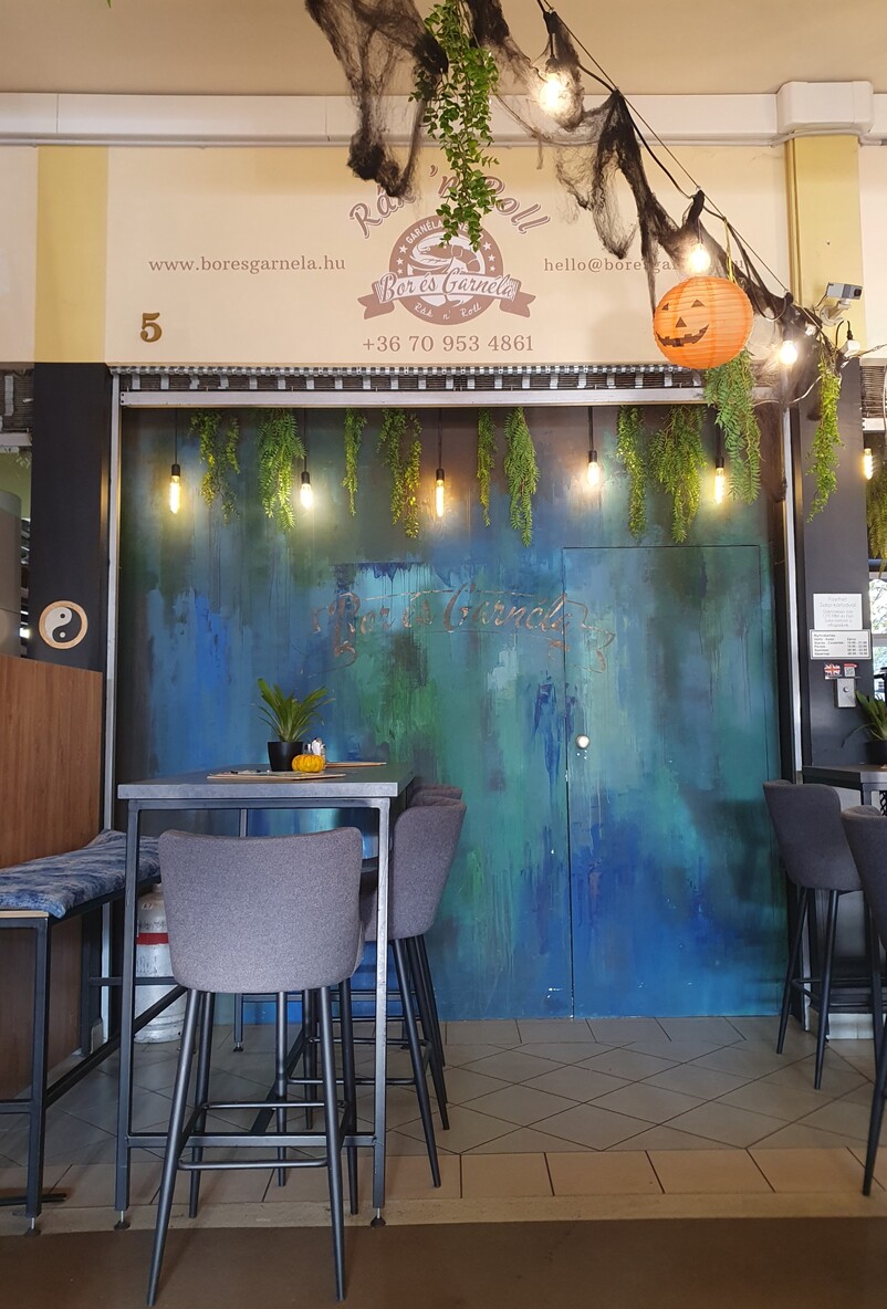 Rákokra alapozó, távolkeleti ihletésű konyhát visznek, az étlap dicséretes rövid és áttekinthető, minden frissen készül. A séfajánlat keretében jambalaya-t, bulgursalátát, massaman curryt, garnéla satay-t, garnélás katalán szendvicset, valamint görög pitát kínálnak, értelemszerűen azt is garnélával. Az étlapon szerepel többek között tom yum leves, fehérboros garnéla, roston sült és pankó morzsás garnéla, előbbi 20, 40 és 80, utóbbi 25, 50 dekás, illetve egy kilós adagban, saláták a kimchitól a mangó-dresszinges friss vegyes salátáig, s ötféle desszert köztük mangós kókusztejes sushi-rizs és háromféle tarte. A dekára megadott rákok ára nyilván annál kedvezőbb, minél nagyobb adagot rendelünk. A séf Gyurik Norbert, aki Németországban szerzett tapasztalatot, de dolgozott a jónevű Vágódeszkában is. A „Bor és Garnéla” a 2025 őszén megjelent magyar Gault&Millau étteremkalauzba bekerült két kecskeméti vendéglátóegység közül az egyik (a másik a 48 étterem).