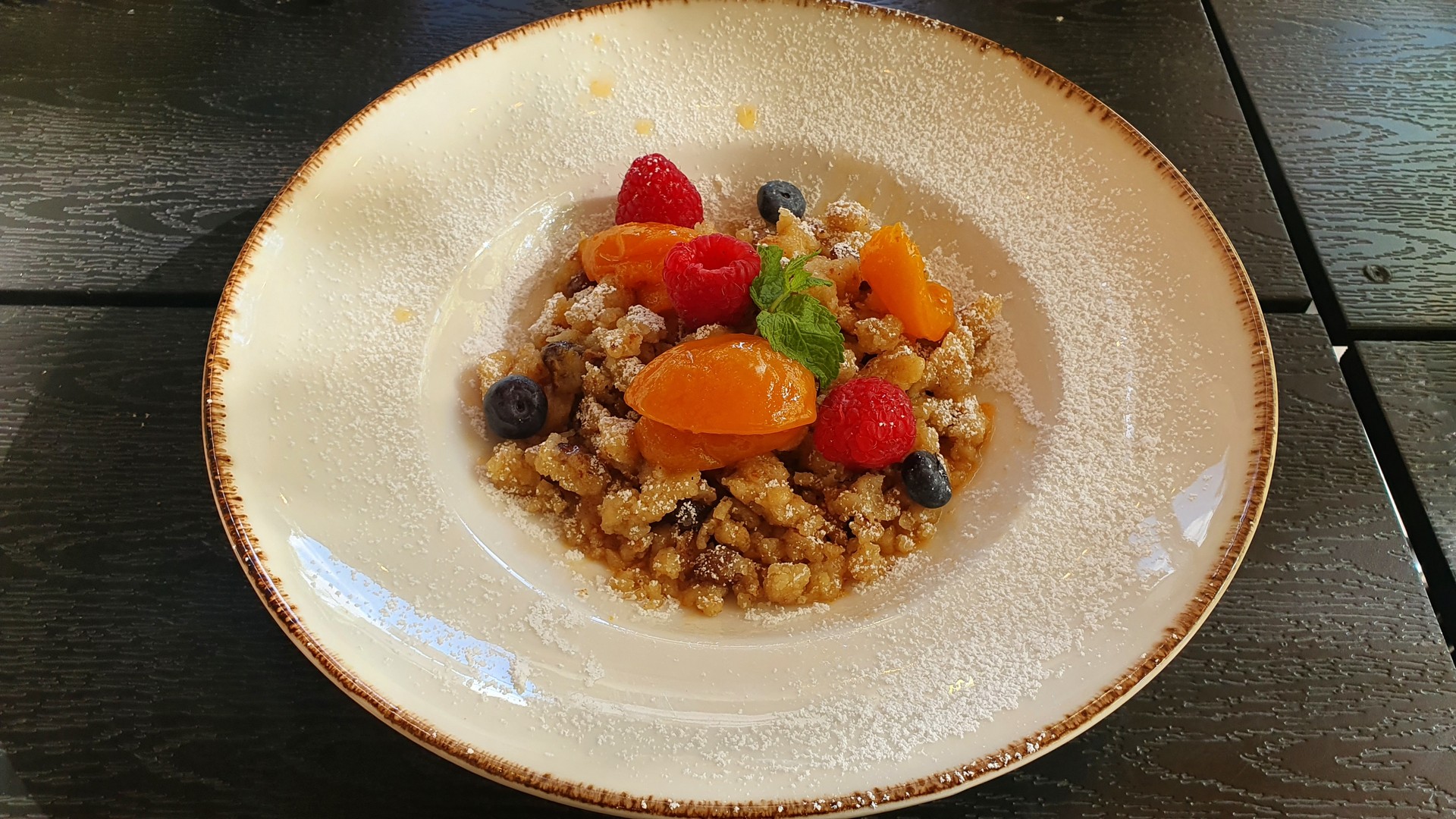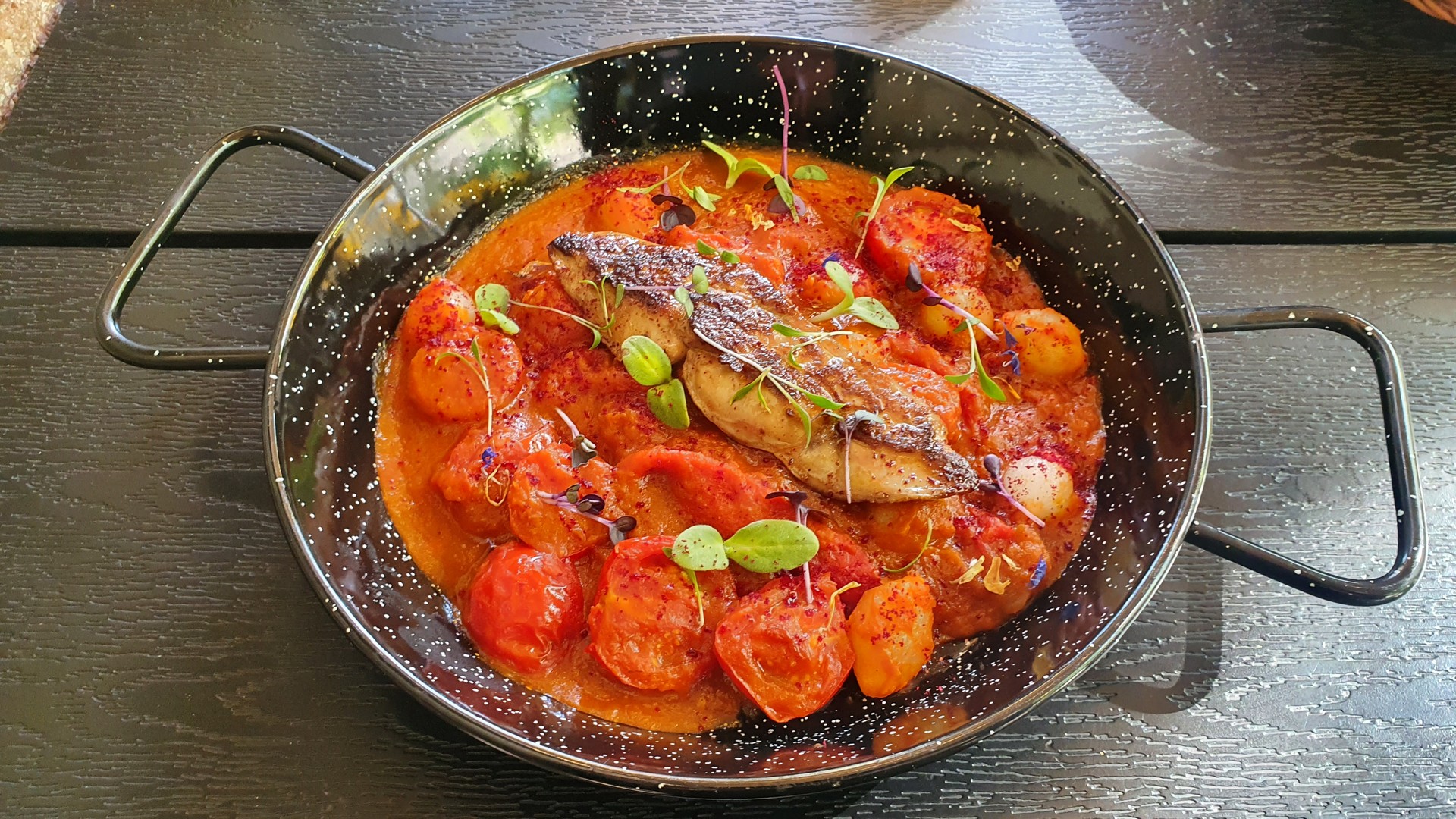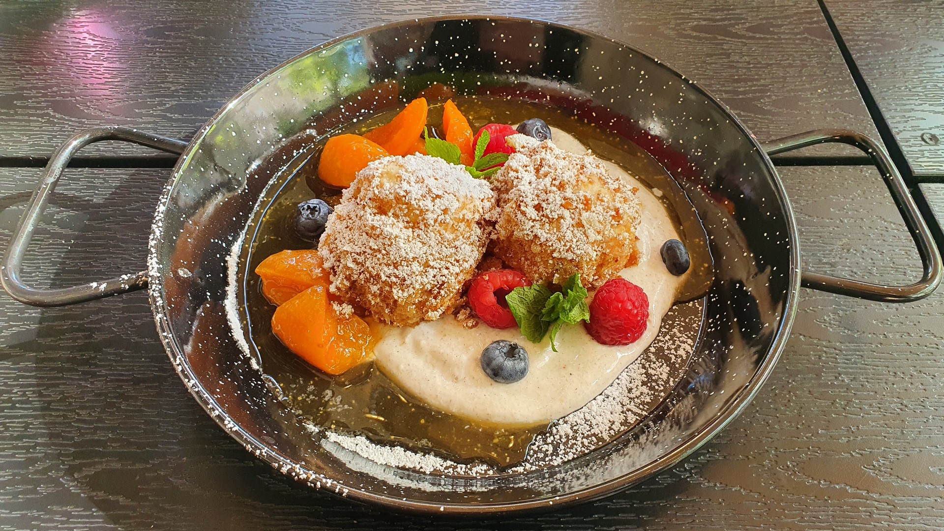 A koktélparadicsomos, mikro-zöldekkel tálalt kacsamájas lecsó ízletes, jó az ikonikus magyar fogás íz-egyensúlya, emulziós, megnyerő az állaga, kiváló hozzá a kacsamáj, ami jól hőkezelt tisztes alapanyag. A klasszikus felfogásban készült remek csirkepaprikáshoz kiváló, helyben készült tojásos nudlit adnak. A kajszimártással, málna- és áfonyaszemekkel, kellemesen ízesített tejfellel tálalt túrógombóc ízre, állagra egyaránt meggyőző. Nem okoz csalódást a császármorzsa sem, bár a tejfelt leszámítva ugyanazokkal az elemekkel dobták fel, mint a másik desszertet.