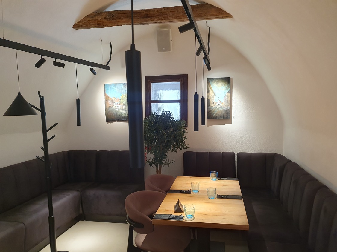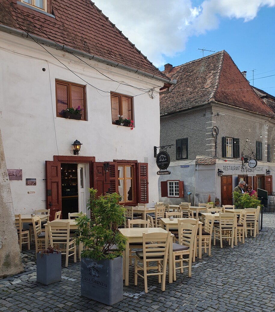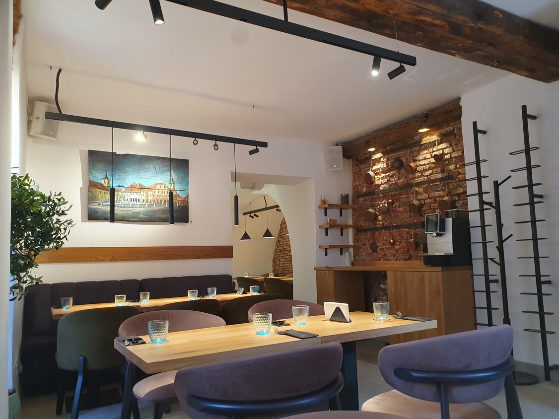 Hangulatos, elegáns, igényesen berendezett étterem a város történelmi központjában. Mivel a cégéren az áll, hogy „Casa Grinda 1401”, hajlamosak lennénk azt hinni, hogy akkor épült az étteremnek otthont adó ház, ami a középkor leheletét hordozó Nagyszebenben, mely több műemléket is őriz a XV.-ik századból nem elképzelhetetlen, de a honlap bemutatkozó soraiból megtudhatjuk, hogy a szóban forgó ingatlan XVII. századi. A hely neve a beltérben is megjelenő méretes, szebb időket látott gerendákra utal (a „grinda” gerendát jelent románul). A dekoráció esztétikus, a falakon festmények a város ikonikus épületeiről, továbbá élő moha és zöld növények egy fából készült alkalmatosságon. Odafigyeltek az étkészlet, a poharak és a tányérok minőségére is. Az asztalon korrekt olívaolaj, balzsamecet, Himalája só- és borsdaráló. Jó időben egy belső meg egy külső teraszt is működtetnek. Ottjártam idején a Casa Grinda első helyen állt a Tripadvisoron a város 240 regisztrált étterme közül.