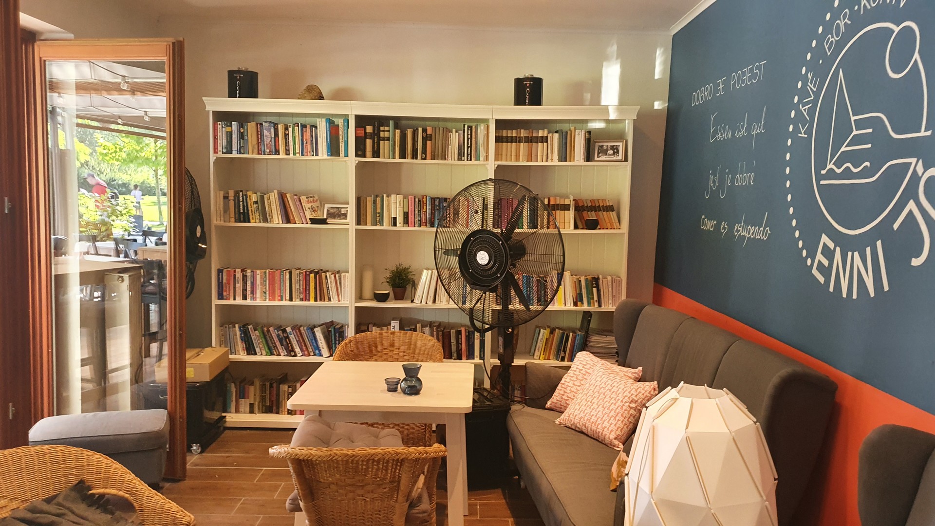 Az Enni jó Balatonfüred egyik új sztárja. Megnyerő a könyvtárszerű beltér, akárcsak a Tagore sétányra néző otthonos terasz, mi a strand felé néző részen ültünk le, ahonnan rálátás nyílik a tóra is.