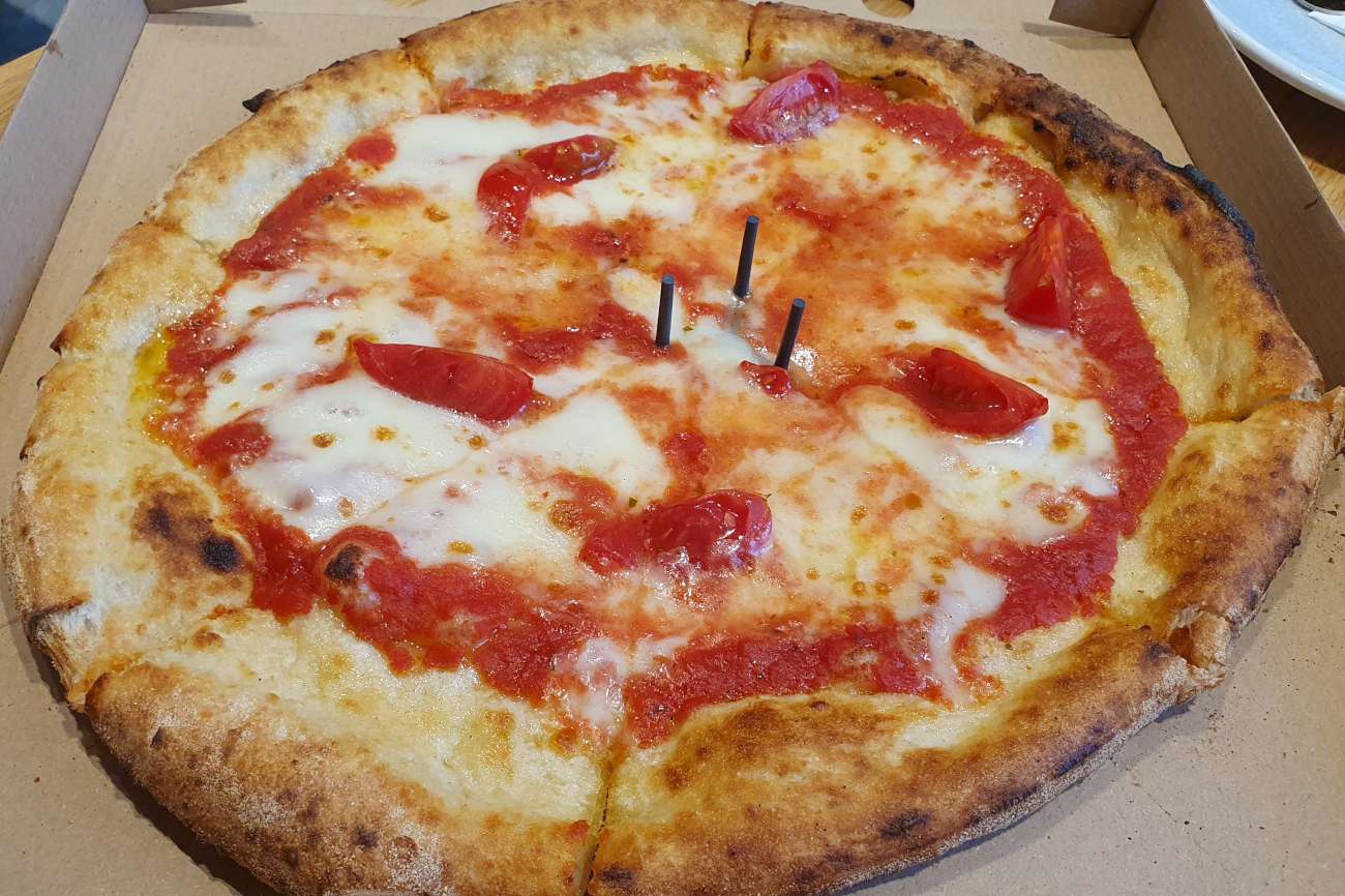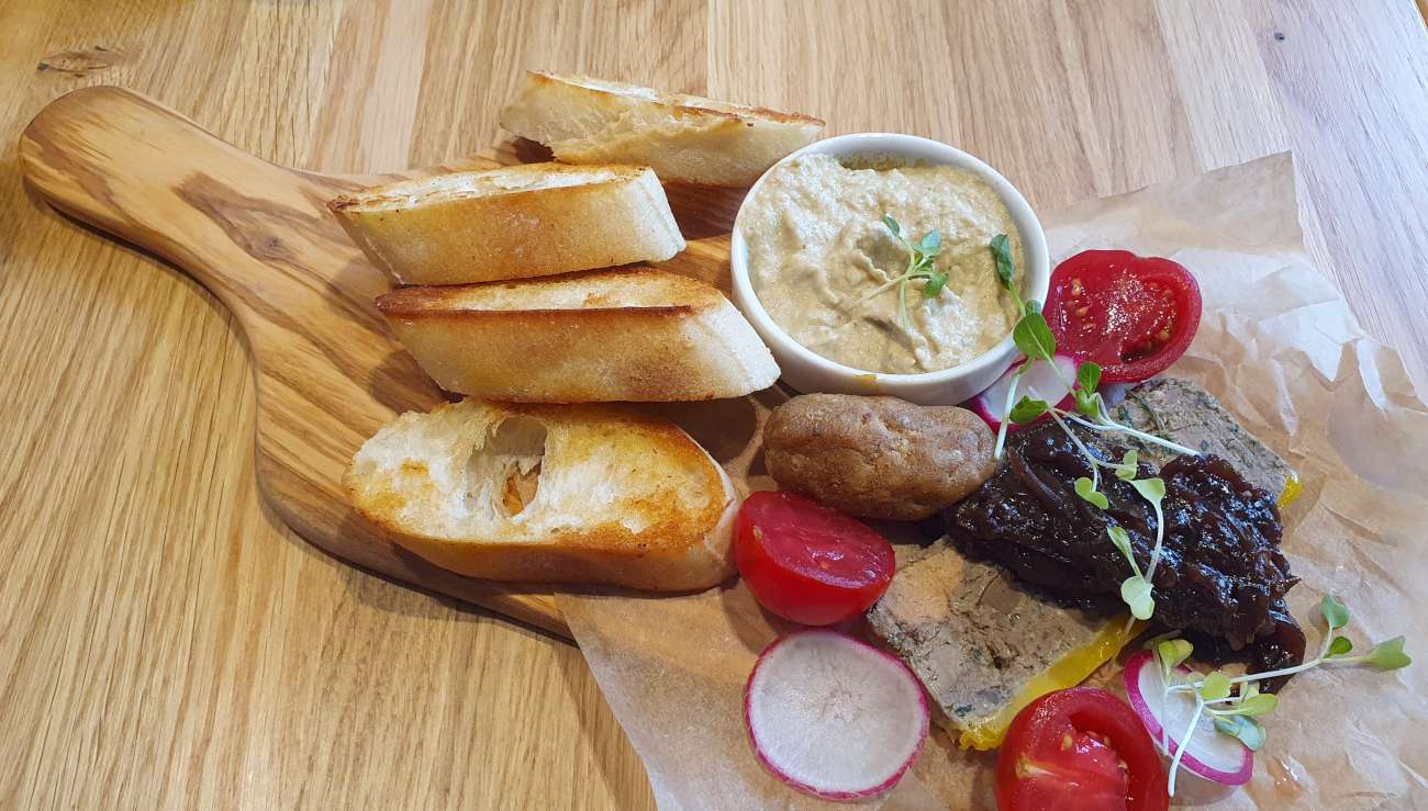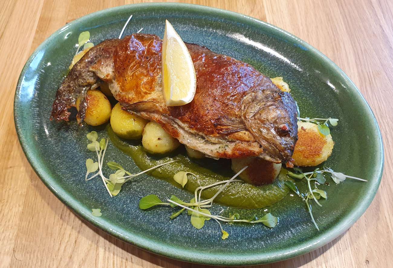 Előételnek „magyaros ízelítőt” kértem, amiben remek padlizsánkrém, krumpliformára hozott élvezetes tepertőkrém, jól sikerült hagymalekvárral kísért, kiemelkedő mozaikos szárnyasmájpástétom kapott helyet szépen tálalva, kifejezetten jó pirított baguette, koktélparadicsom, némi retekszirom és mikrozöld mellett. A pisztrángot alighanem airfryer-ben sütötték, ez formára kicsit megviselte, ízre jó, mint ahogy finom a spenótkrémágyon tálalt kellemesen pörzses parázsburgonya is. A Margherita pizza valahol a trattoria és nápolyi stílus között foglal helyet, nem tökéletes, de átlag feletti, azt nehezményeztem, hogy bár az étlap beígéri a bazsalikomleveleket, ezek hiányoznak, mint utóbb kiderült azért, mert e fontos dekorációs, de egyben ízesítő elem elfogyott a konyhán. A „Somlói” nevű, habcsókkal ékített monodesszert a franciás, könnyed süteményeket kínáló új generációs cukrászdákat idézi látványban, ízre hoz valamit a névadó klasszikusból, állagra lehetne még könnyíteni rajta.