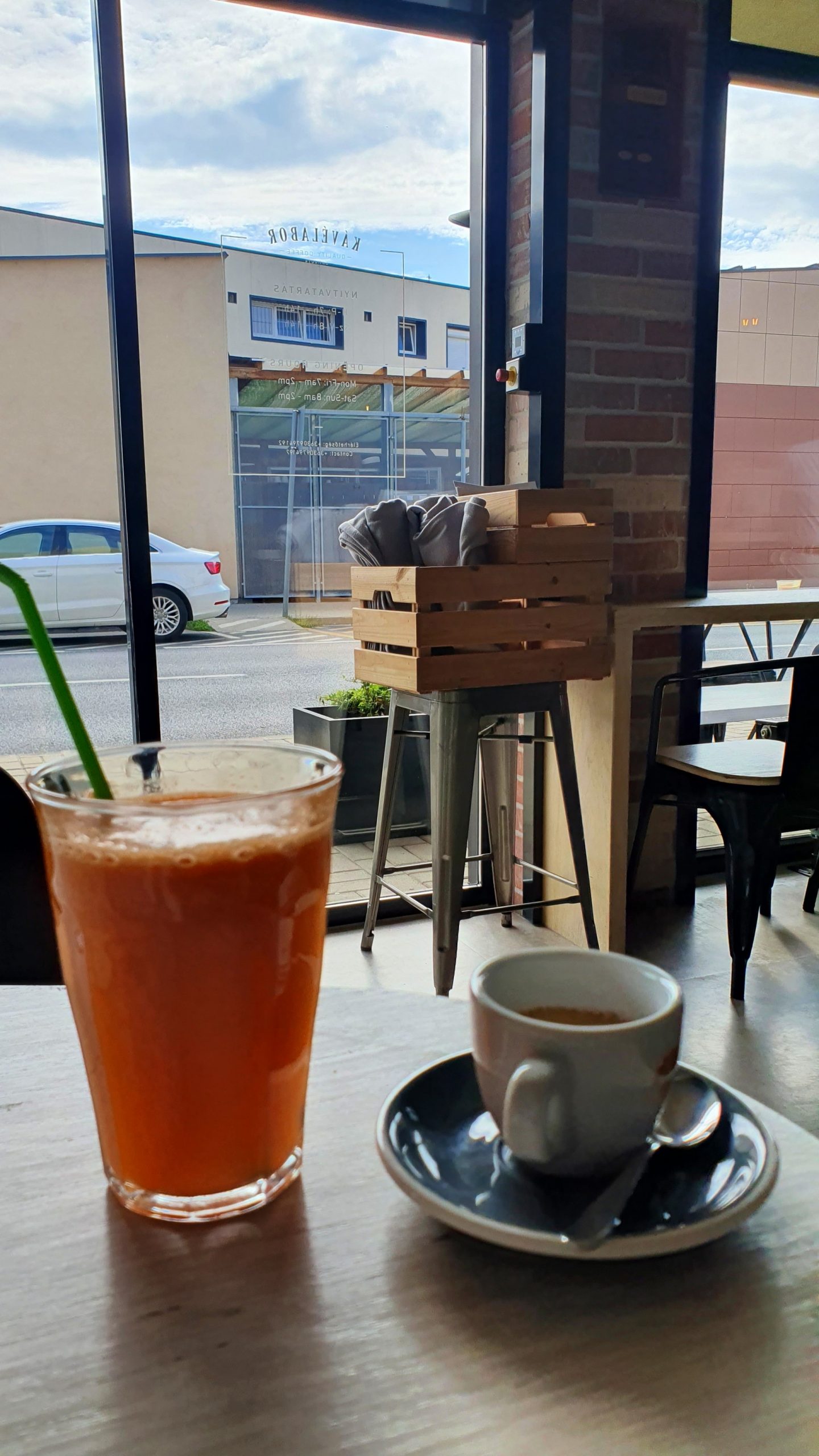 A kifogástalan, szép savú presszón kívül egy répa-narancs-ananász levet ittam, az is remek volt.
