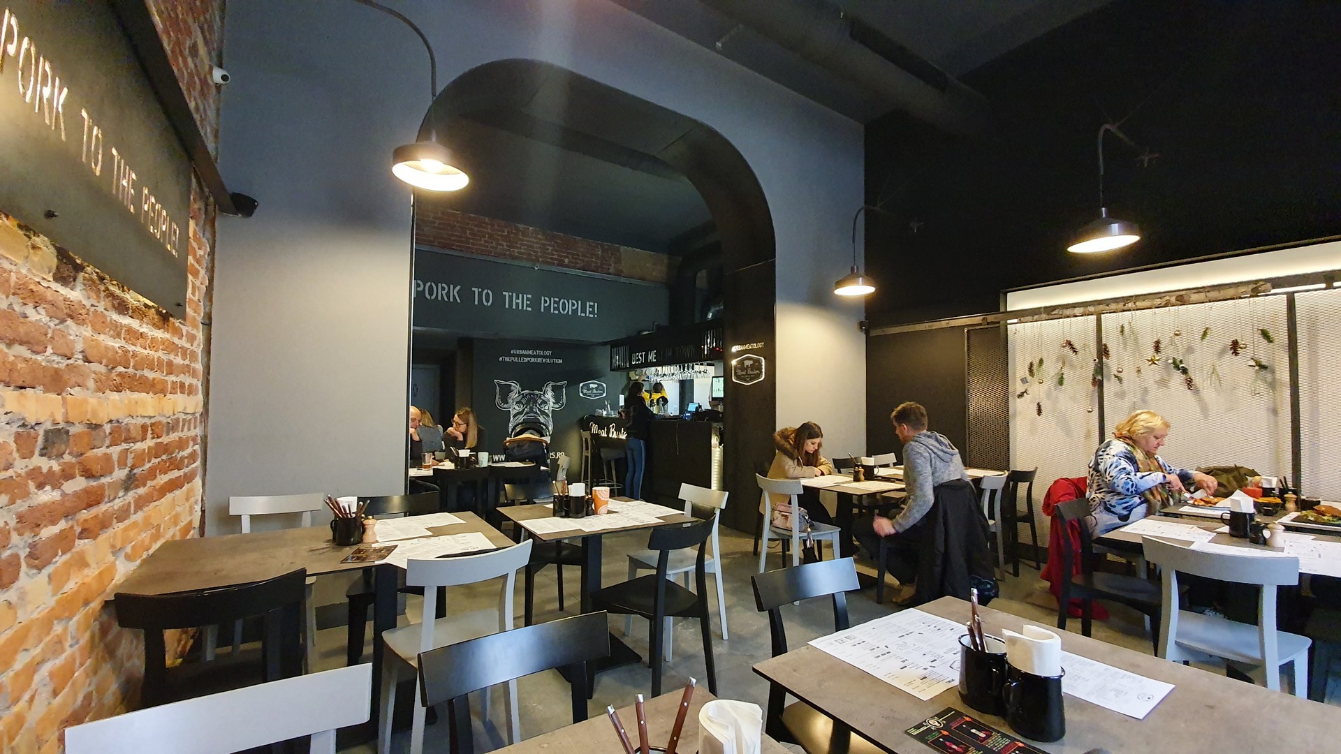 A Meat Busters egy rendkívül hangulatos, jól kitalált egység Temesvár történelmi központjában, a Losonci tér tőszomszédságában. Jó a jelmondat: „pork to the people”, meggyőzőek külön-külön és együtt is a dizájn elemek, az abroszt helyettesítő, az étlapot is tartalmazó papíralátéttől a székeken-asztalokon át a disznófejes falfestésig. A magas beltér alaphangulatát szürke-fekete falfestés és natúrszínű nyers tégla adja. Az asztalon minőségi evőeszköz zománcos fémbögrében, só- és borsdaráló.
