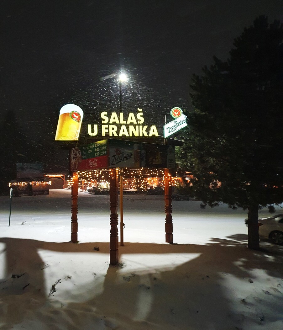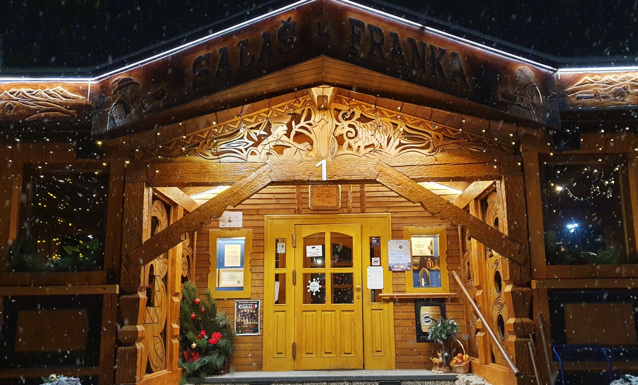 Impozáns, fából ácsolt épületben működik a Salas u Franka étterem és fogadó. A beltér rusztikus hangulatát a pácolt fa dominálja. Faragott székek, piros terítővel fedett asztalok, fából készült „platzteller”. A fotókkal illusztrált menü lapjait is fával fogták össze. A hely megnevezésében a „salas” az erdélyi esztenának felel meg, juhászszállásként vagy pásztortanyaként fordíthatjuk magyarra. A „motorest” kifejezés lényegében autóscsárdát fed (motor + restaurant/restauracia szóösszevonás), cseh és szlovák nyelvterületen találkozhatunk ilyen helyekkel, de ott sem túl gyakran. A hely „Salas Polana” néven 1970-ben épült, termelőszövetkezeti formában működtették. 1994 és 1995 között nem akadt gazdája, 1996-ban nyitotta újra a jelenlegi tulajdonos, Norbert Frank. A konyhafőnök immár tíz éve Jaroslav Krajnak, aki szerepelt a tévés műsorokban is.
