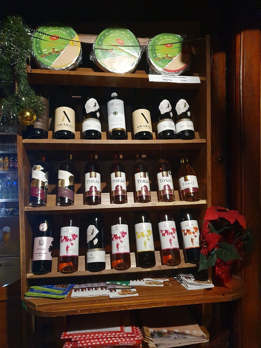 A négy helyi bort kínálnak kimérve, további 16 tételt palackban a nagytoronyai Ostrozovic s a Velké Bílovice-i Hrabal pincéktől. A Heineken portfólió helyi söreit kínálják. Csapon Zlaty Bazant 10-es, Radler, alkoholmentes és ’73-as kapható, továbbá a Belső-Magyarországon sajnos nem forgalmazott 12-es Krusovice. A palackos választékba bekerült a Pilsner Urquell is. A töményitalok java része tömegtermelésű tétel, de akad néhány helyi érdekesség is a választékban.