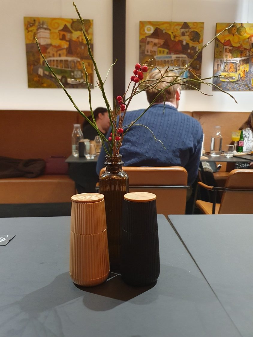 Otthonos, hangulatos, szépen berendezett kávézó-étterem Késmárk központjában. A nyerstéglás beltér, a nyírfacsemetékből összeállított válaszfal-féleség, a falakat ékítő, keret nélküli festmények, a bútorzat egyfajta korszerűen rusztikus atmoszférát teremt. A terem végében a fémből készült polcrendszeren szakkönyvek, dísztárgyak, tányérok, vágódeszkák, konyhai edények pihennek, továbbá aszalványok hatalmas befőttesüvegekben. A beltér egyik különleges eleme egy megkezdett egész minőségi érlelt sonka, amiből a vendég magának farigcsálhat szeletkéket egy erre szinte alkalmatlan késsel. Az asztalon só- és borsdaráló, aprócska üvegváza ágakkal. A hely Facebook-oldala kávézóként definiálja az egységet, de a bisztró-vonal legalább olyan erős, nem szólva a gondosan összeválogatott alkoholos italokról.