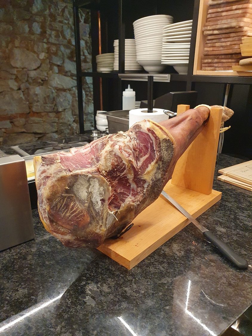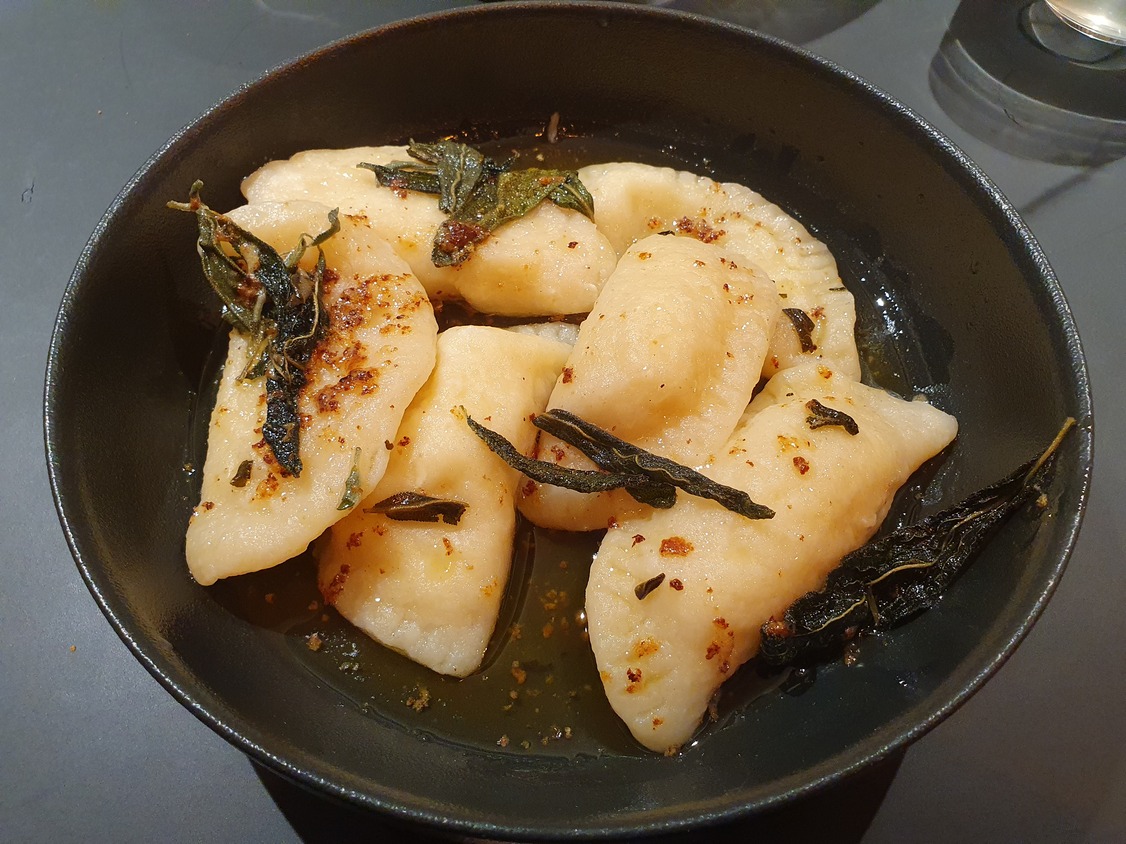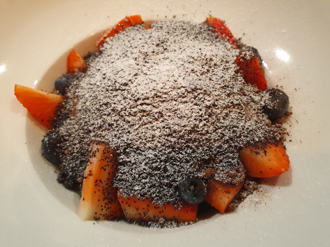 Az étlap könnyen áttekinthető, átgondolt, lényegre törő. Kínálnak három előételt, két levest hat főételt, egy desszertet. Szerepel a választékban az általunk rendelt fogásokon és a napi ajánlaton kívül sült édesburgonya szarvasgombás majonézzel és tehénsajttal, céklás rizottó parmezánnal fetával és rukkolával, szarvasgulyás házi zsemlegombóccal, áfonyalekvárral, lazac zöldségpürével és grillezett zöldséggel, valamint borjúbécsi petrezselymes burgonyával és áfonyalekvárral. Mint látható, kissé eltúlzott az áfonyalekvár belekombinálása az egyes fogásokba, de azért érezhető a minőség iránti elkötelezettség is mindebből.
