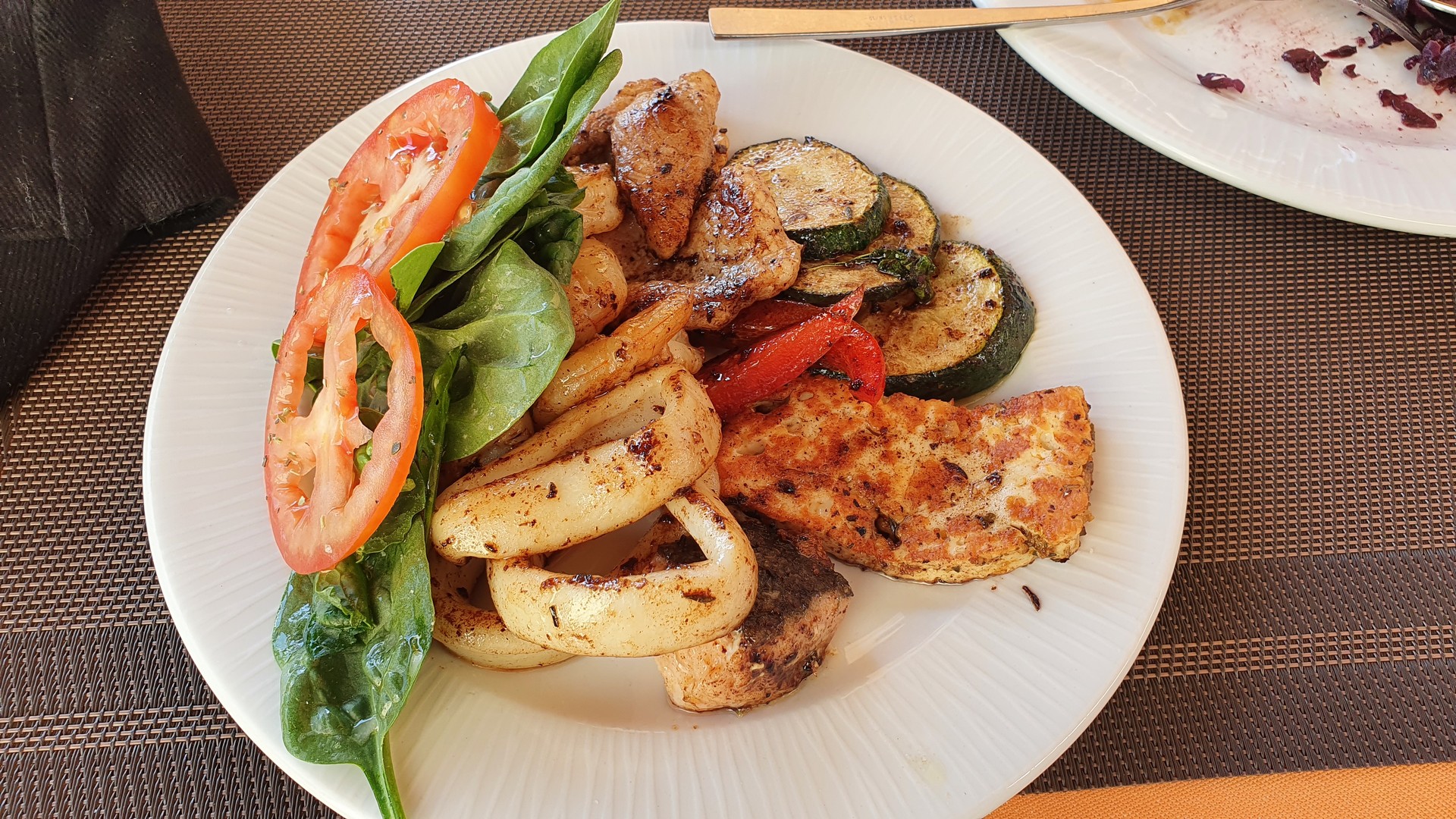 A svédasztalon kínált készételek átlagosnak mondhatók, akad köztük jó, (mint a pörkölt) és kifejezetten gyenge (mint a kiszáradt kacsamell). A sushi-választék javát lehet, hogy szemfülesebbek már elvitték, ami maradt mire odaértem, az kommersz volt, a rákpótló surimi dominált benne. Viszont a grillpult kiváló s a forró vaslap mellett dolgozó szakács ügyesen teszi a dolgát, nem süti túl az alapanyagokat, de alul sem készíti őket. Ritka és drága alapanyagok is vannak választékban, szép számmal: királyrák, krokodil, tintahal, lazac, bélszín, láma, zebra és kenguru. Továbbá persze sertés- és csirkehús, sajtok, zöldségek. A desszertfront hagyományos, a mákos rétest és somlóit kóstoltam meg egy szelet görögdinnye kíséretében, korrekt, élvezetes volt mindkettő, a somlói szaftossága és ízkoncentráltsága külön kiemelést érdemel.