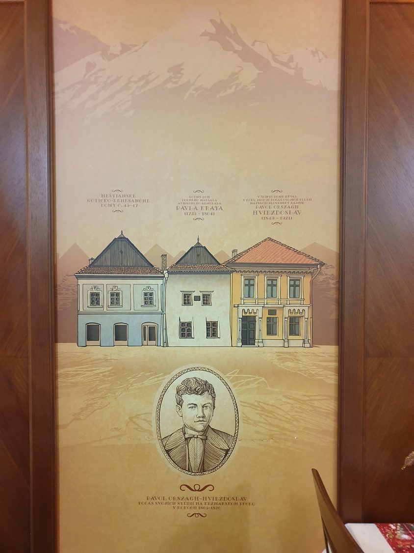 A Poézia étterem a város szívében működik a legnagyobb szlovák író, Pavol Országh Hviezdoslav nevét viselő, számos rangos elismerést elnyert boutique-hotel keretében. Mint a honlapról megtudhatjuk, a szállodának otthont adó XVII.-ik századi műemléképület-együttes kötődik is a magyar apától és szlovák anyától származó, fiatalkorában magyarul és németül is verselő irodalmi nagysághoz, aki éveket élt a falai között. A szálloda keretében az éttermen kívül működik egy lobby bár is, mely a Múzsa névre hallgat, szivar- és konyakszoba, irodalmi kávézó s egy borbár, melynek borszelekciójáért Jaroslav Katrenič országos sommelier-bajnok felel. Valóságos labirintuson keresztül juthatunk el a szálloda éttermébe. A beltér eklektikus, vannak megnyerő elemei, mint például a falakat díszítő, Késmárk ikonikus épületeit ábrázoló rajzok, de a belsőépítésznek nem sikerült igazán meghitt, intim hangulatot teremteni. A magyar szakmai kommunikációban ritkán emlegetett, de ezzel együtt fontos hivatkozásnak számító Falstaff étteremkalauz, mint az egyik tábla tanúskodik róla, 84 ponttal jutalmazta a helyet.