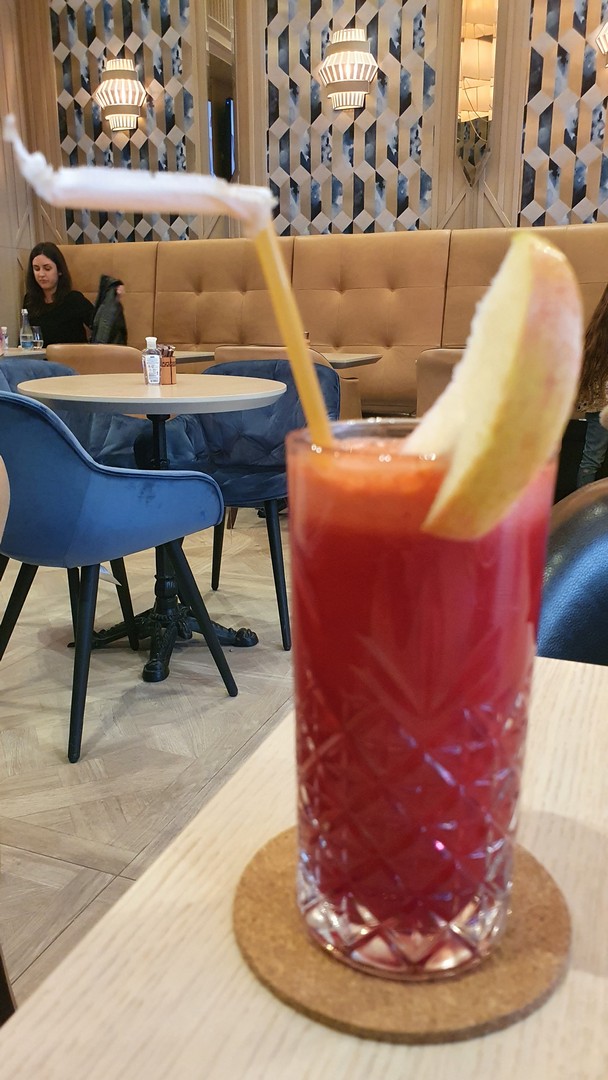 A presszó magas színvonalú volt, ütötte a mércét. Ittam még egy alma-cékla-répalevet is. Kértem elvitelre citromos pisztáciatortát, de nem tudtak vele szolgálni, répatortát ajánlottak helyette, végül egy choco-cherry elnevezésű sütit vásároltam, ami korrekt volt, katarzismentes, blogger-színvonalú.