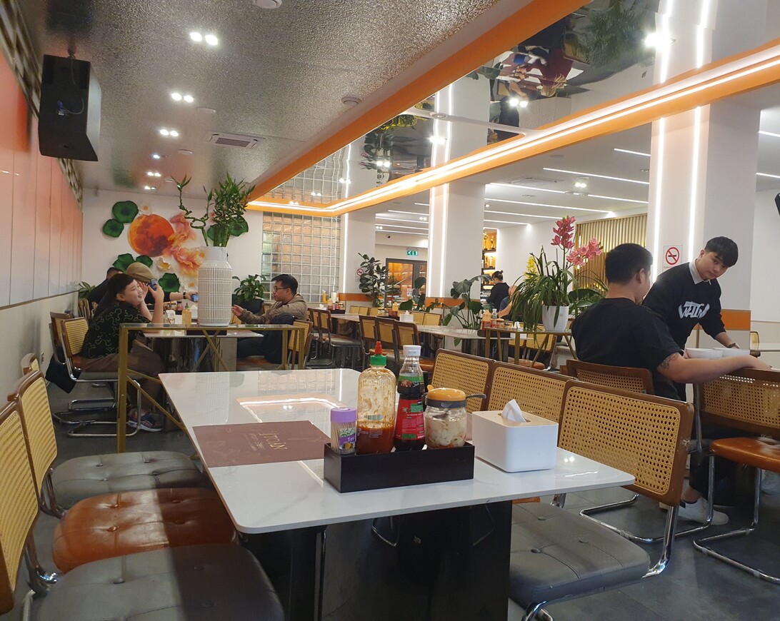 Tágas szuterén étterem Kőbányán, a kínai negyedként emlegetett városrészben. A beltérben sok zöld növény, szépen kialakított mini-szentély, tükrök, nagy fényesség, kevés intimitás. A terem végében hatalmas LCD kivetítőn a világ szépségeit csodálhatjuk a Cinematic Travels csatorna válogatásában. Az asztalon shi take gombás szójaszósz, ecetes chilis fokhagyma, sriracha szósz, kis fekete dobozban hagyományos evőeszköz és fekete műanyag-evőpálcika. Az étterem bekerült a 2025 őszén megjelent magyar Gault-Millau kalauzba, pop kategóriás helyként.