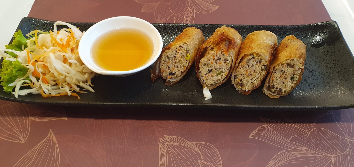 A tavaszi tekercs remek, jó tartású, jó ízű, hozza mindazt, amit a műfajtól elvárunk. Rendeltünk pacalsalátát is, de a tavaszi tekercs elfogyasztása után, negyven perc várakozást követően tudtuk meg, hogy elfogyott a pacal. A bakit tíz százalék engedménnyel orvosolták. Mivel a tavaszi tekercset és a pho levest épp őszi akció keretében kínálták, számlánk a szokásosnak alig több, mint felét tette ki. A pho leves vibráló, jó ízű, hoznak mellé lime-ot is. A jól sikerült főtt rizzsel és párolt brokkolival körített halszósszal karamellizált hal élvezhető. Mellette sajátos illatvilágú levesszerűség is helyet kapott. Az ételek mellé rendelt limonádét szintetikus ízvilág uralja.