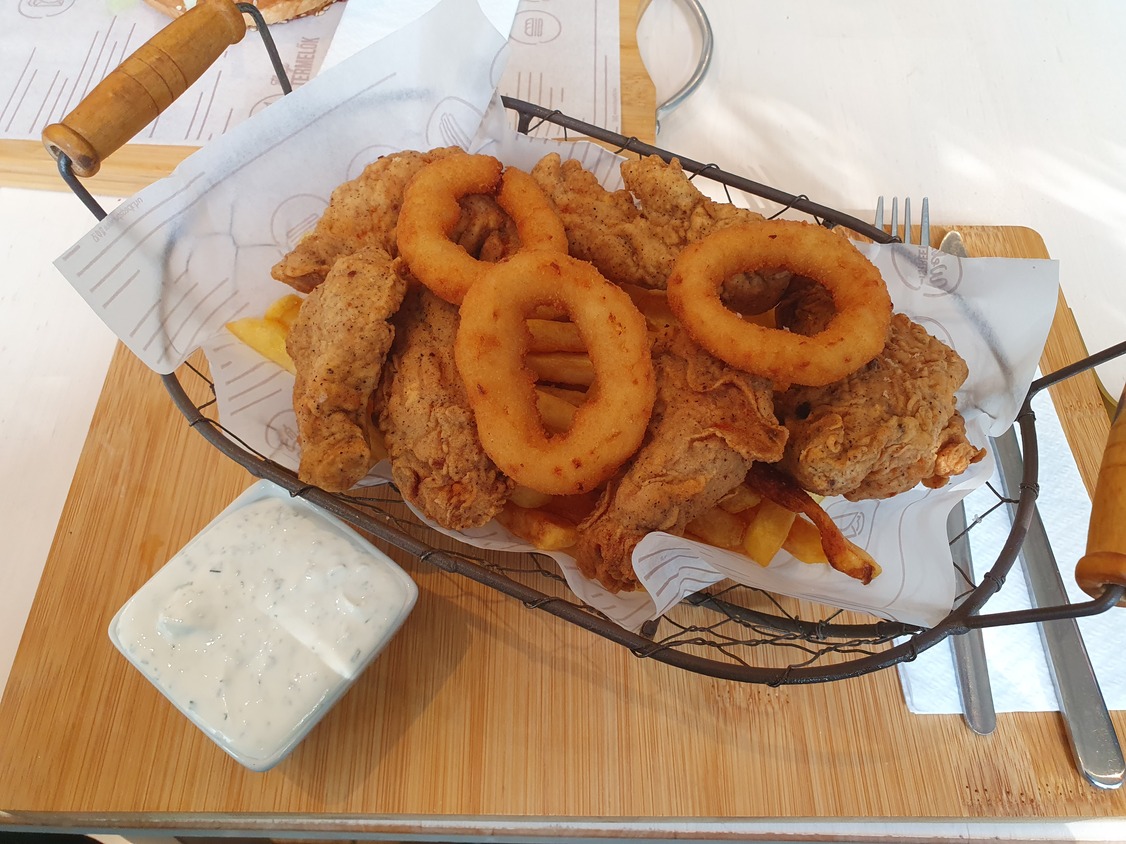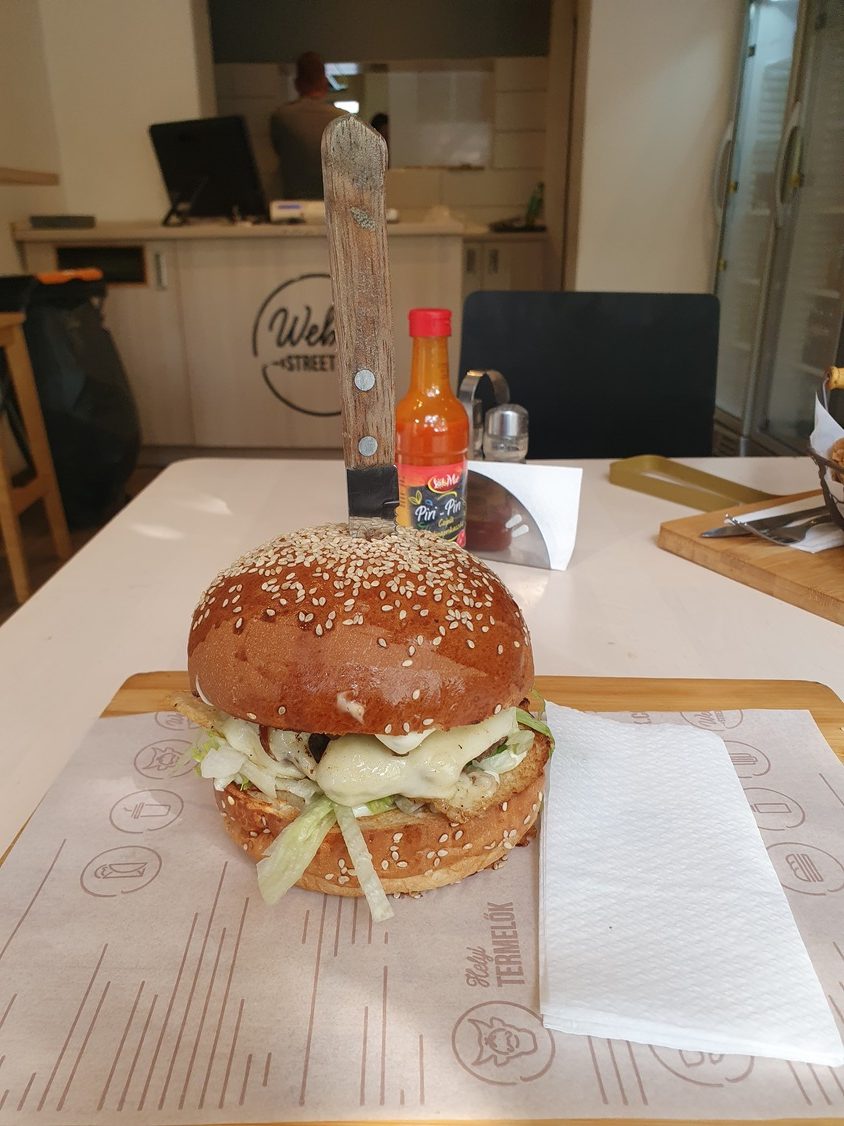 A burgerben a húst átsütötték, a buci és a belevalók korrektek. A produkció átlagos élményt adott, egy igényes helyen megkérdezik, hogy miként kéri a vendég a húst, vagy eleve mediumra sütik és nem well done-ra. Rendeltünk egy Weber tálat is, a kisebbik variáns 3 nuggets-et, 3 csirkeszárnyat, 3 hagymakarikát, sült burgonyát és egy mártogatót integrált. 3090 forintért kifejezetten jó ajánlat. A szárnyakat és a melldarabokat ugyanabba az egyébként élvezhető panírmasszába mártva sütötték ki, az alapanyag frissességéhez nem fér kétség. A hagymakarika és a burgonya mirelitáru, a tzatziki szósz lehetne meggyőzőbb. Tisztes átlagos fogás volt ez is.