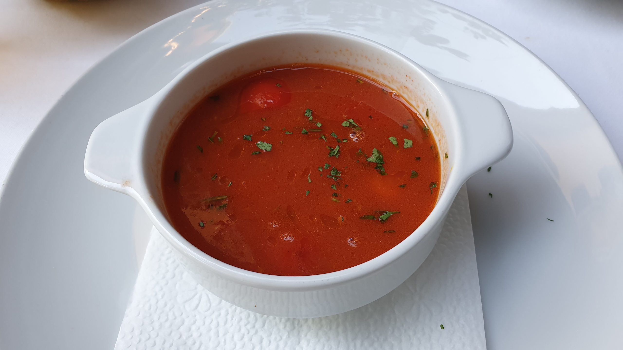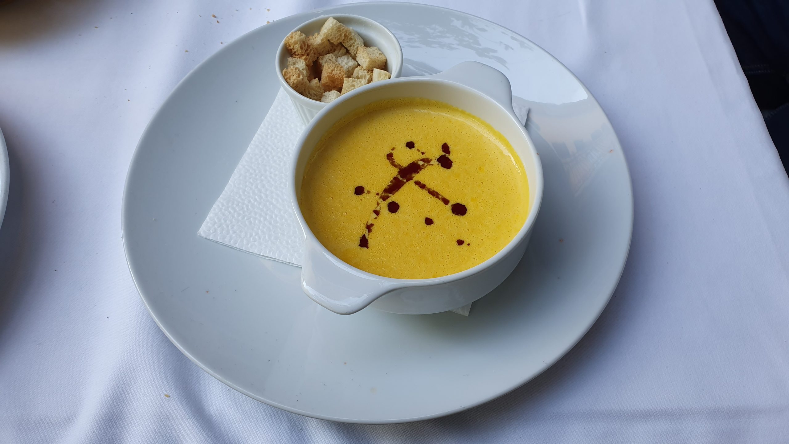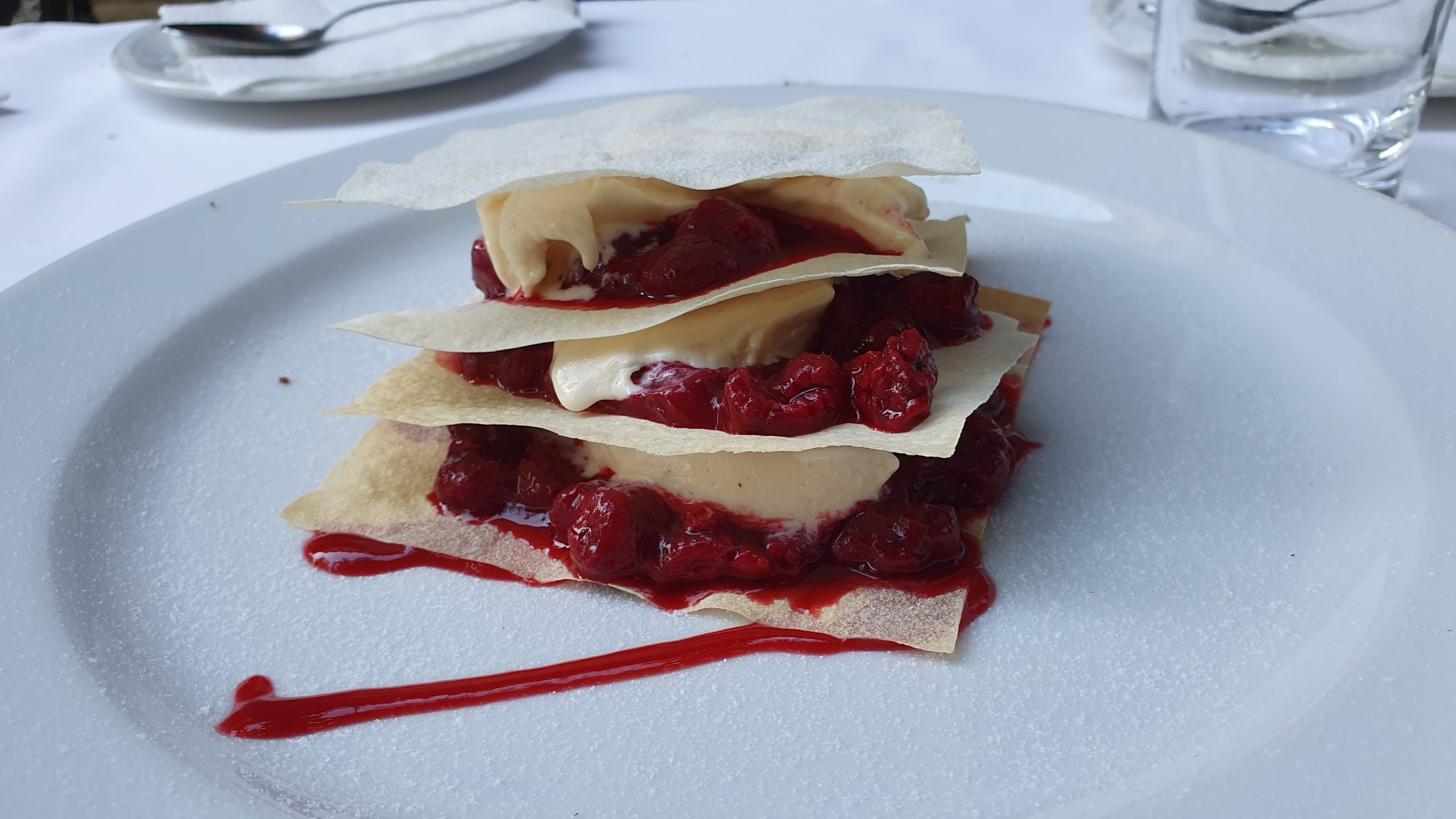 A tenger gyümölcseivel készült leves paradicsomalapú, friss ízhatású, korrekt, a betét jó tartású. A sütőtökkrémleves élvezetes, izgalommentes. Hasonlóan kötelességszerű a salátával körített tengeri sügér, e helyen több fantáziát vártunk a fogástól, különösen, hogy 2019 őszén fizettünk rá 4200 forintot. A mascarpone-es málnás mille-feuille bloggerszintű alibidesszert. Neve ezer réteget jelent, itt ezt négy réteggel megoldották, az is készen vásárolt réteslapnak tűnt. Amúgy a friss málna és a jól elkészített mascarpone-krém kombójának köszönhetően kifejezetten élvezetes zárófogást kaptunk, probléma a koncepcióval és az amatőr tálalással volt inkább.