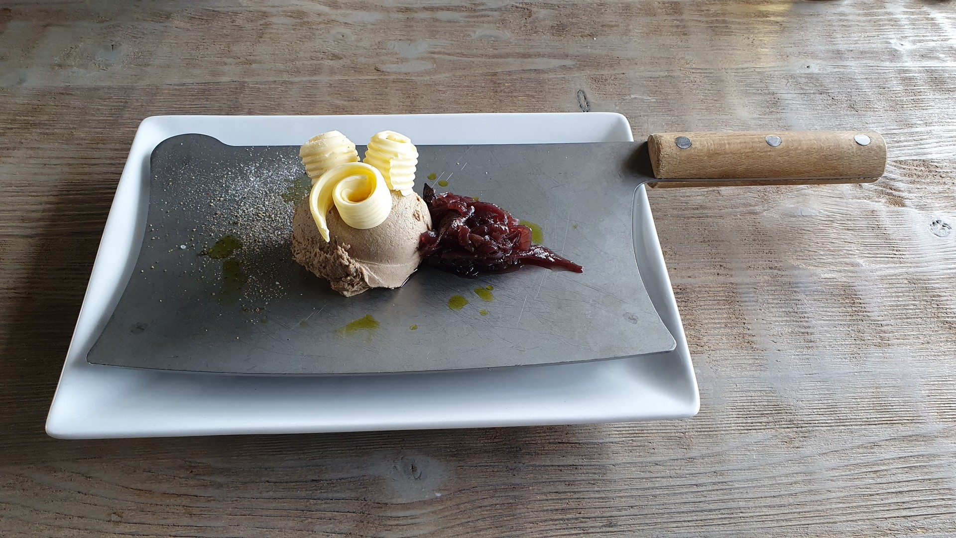 Rendeléskor derül ki, hogy nincs sem fish and chips, sem marhaszegy. A fácánpástétom jól sikerült ízre-állagra egyaránt, kissé túlédesített hagymalekvárt és jóféle pizza-kenyér típusú focaccia-t adnak mellé. Az olívaolaj pomace szintű, a chilis olaj viszont jó, mert kellően kivonatolódott benne a chili. A zöldséges kakastaréjtokány nem kellően sós, de ezen segítünk, a köretként adott kínai tészta finom. A jó tartású marhapofát ellenben túlsózták, ez inkább zavaró. Kifejezetten jól sikerült az eredeti desszert, a túróval és körtél töltött fagotti, amit könnyed vaníliamártásban szolgáltak fel.